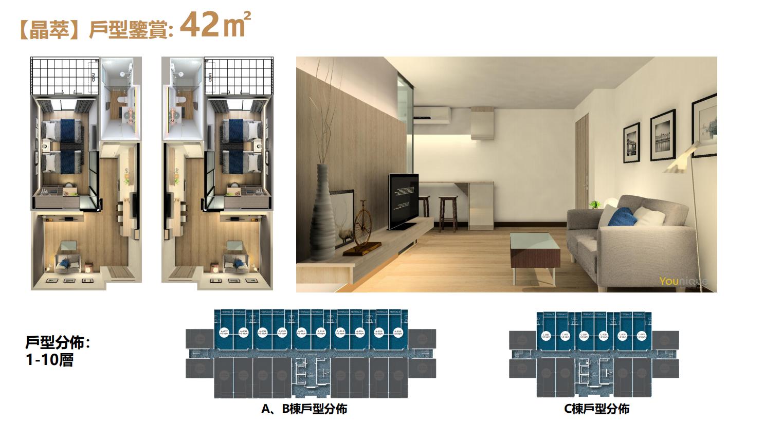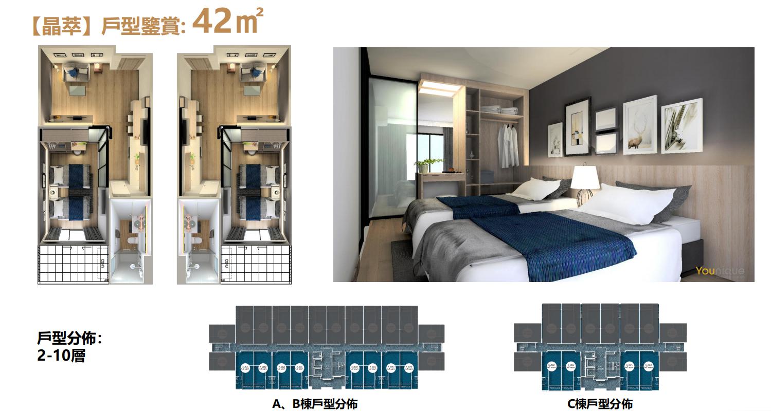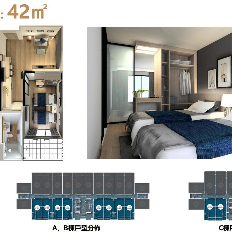 這間房屋設有1間臥室、1間浴室,總面積約為 42 (m2) ,1樓層。