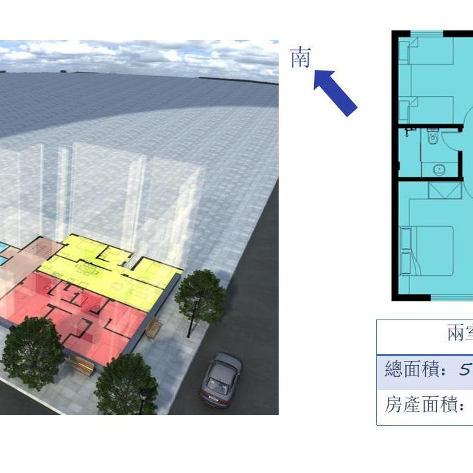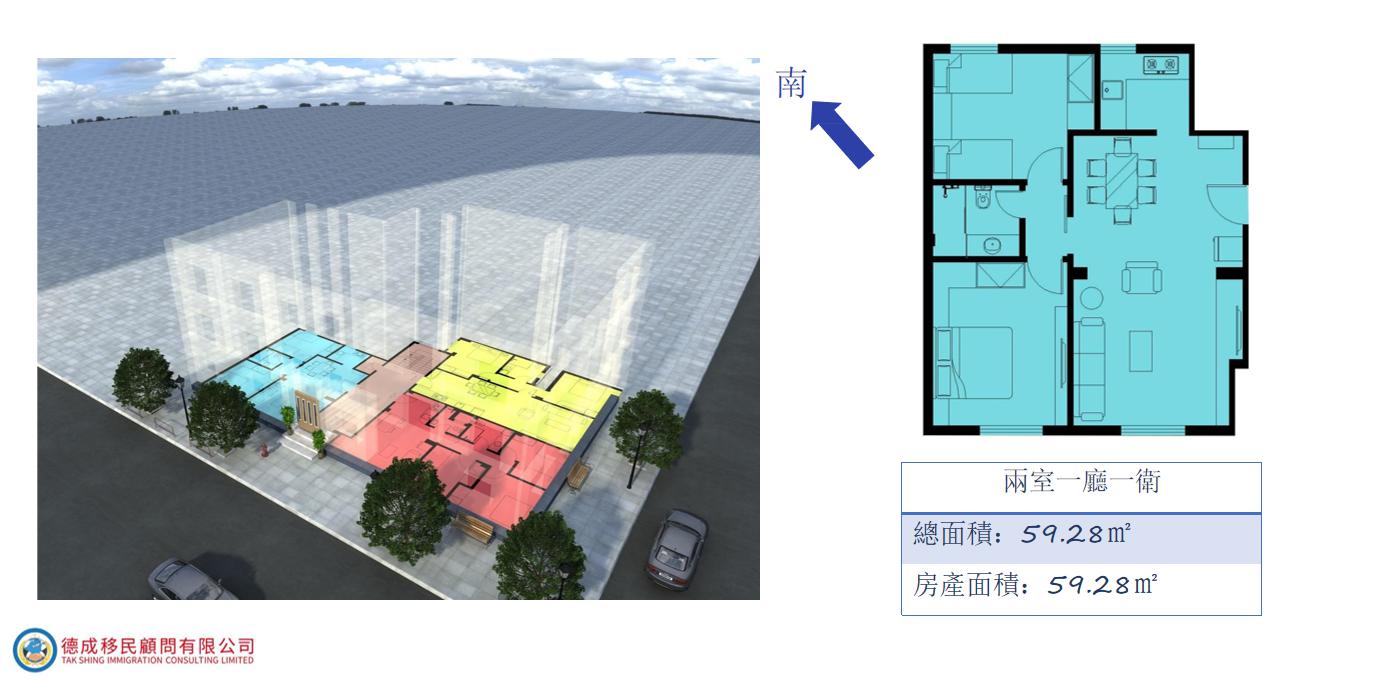 這間房屋設有2間臥室、1間浴室,總面積約為 59.28 (m2) ,2樓層。
