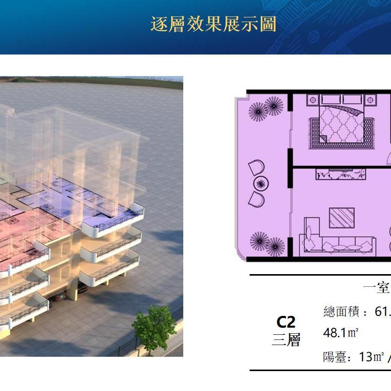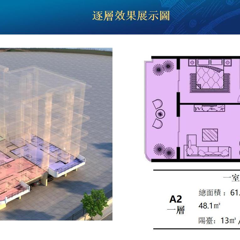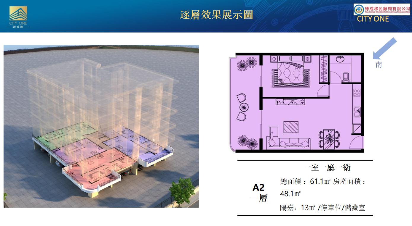 這間房屋設有1間臥室、1間浴室,總面積約為 61.1 (m2) ,1樓層。