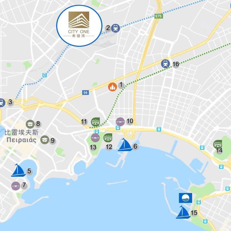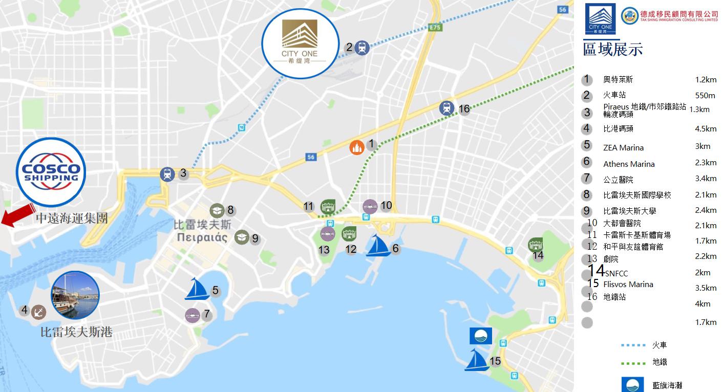 坐希緹灣位於比雷埃夫斯 Piraeus 地鐵/市郊鐵路站旁