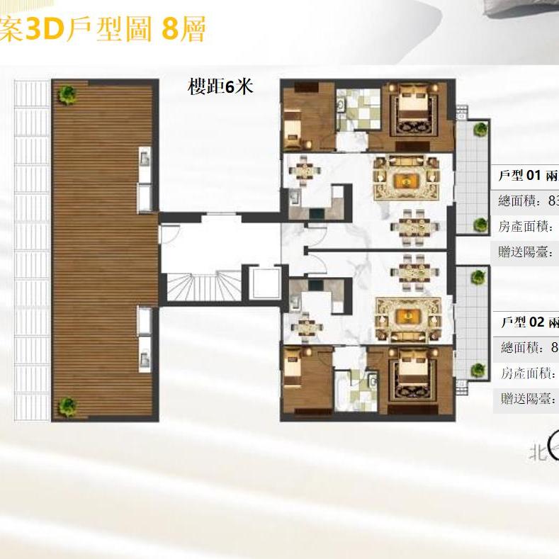 這間房屋設有2間臥室、2間浴室,總面積約為 76.73 (m2) ,2樓層。